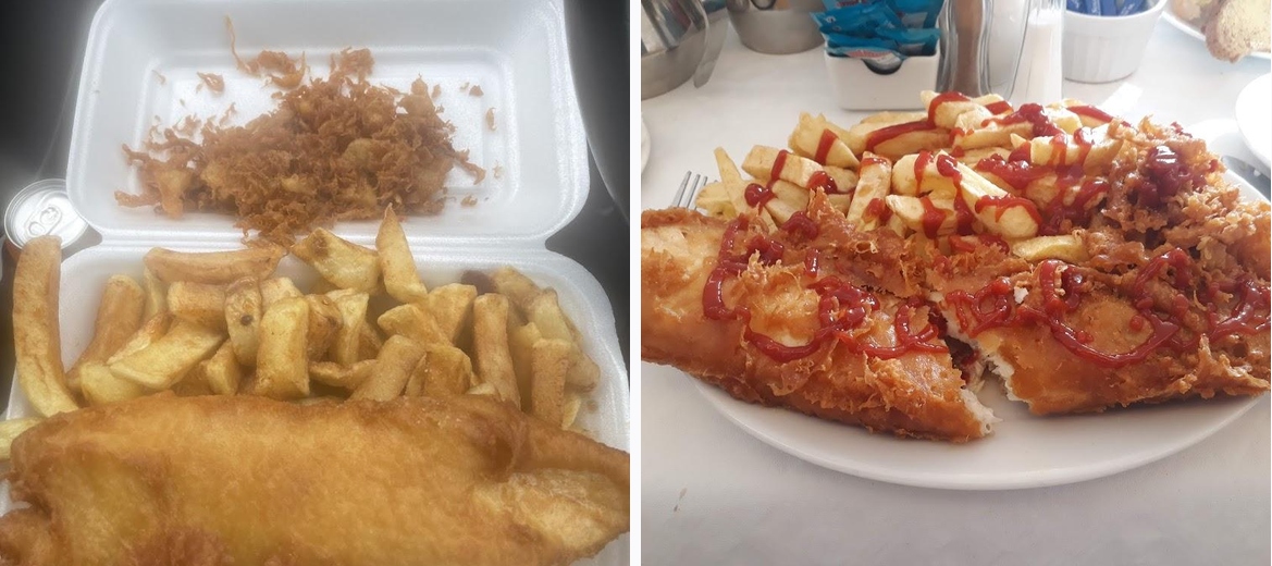 Generous portions of chips and the unique 'scraps' make every meal enjoyable and satisfying, offering great value for money.